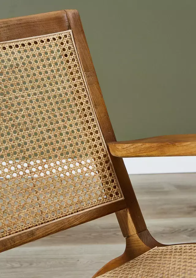 La Carl Hansen de HolaCasa es una poltrona de perfil bajo y estética nórdica. Su estructura de olmo lustrado en roble aporta calidez y solidez, mientras que la esterilla natural en respaldo y asiento suma ventilación y un look artesanal. Con apoyabrazos orgánicos y una sentada amplia, es ideal para living, dormitorio o hall, combinando perfecto con estilos mid-century, escandinavo o boho.